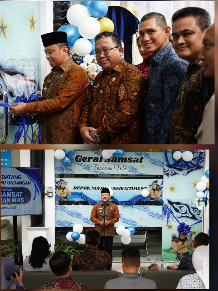 Hal tersebut diungkapkan Wali Kota Depok Supian Suri saat meresmikan Gerai Samsat Pancoran Mas, Depok, yang berlokasi di Ruko Saladin, Jalan Margonda Raya, Kamis (09/04/26). Gedung yang kini digunakan sebagai gerai Samsat tersebut sebelumnya merupakan aset sitaan yang kemudian dialihfungsikan menjadi fasilitas pelayanan masyarakat.