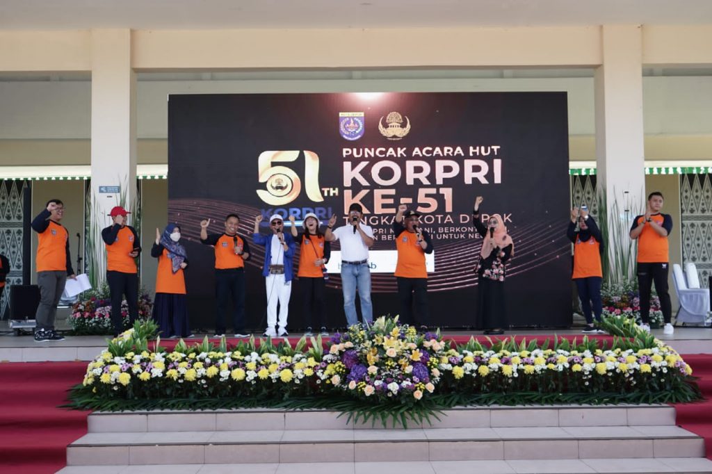 Pemerintah Kota Depok bersama Korps Pegawai Republik Indonesia (KORPRI) Kota Depok menggelar acara Puncak Peringatan Hari Ulang Tahun (HUT) KORPRI Ke-51 Tingkat Kota Depok Tahun 2022 di Alun-alun Kota Depok, Selasa(29/11/22).