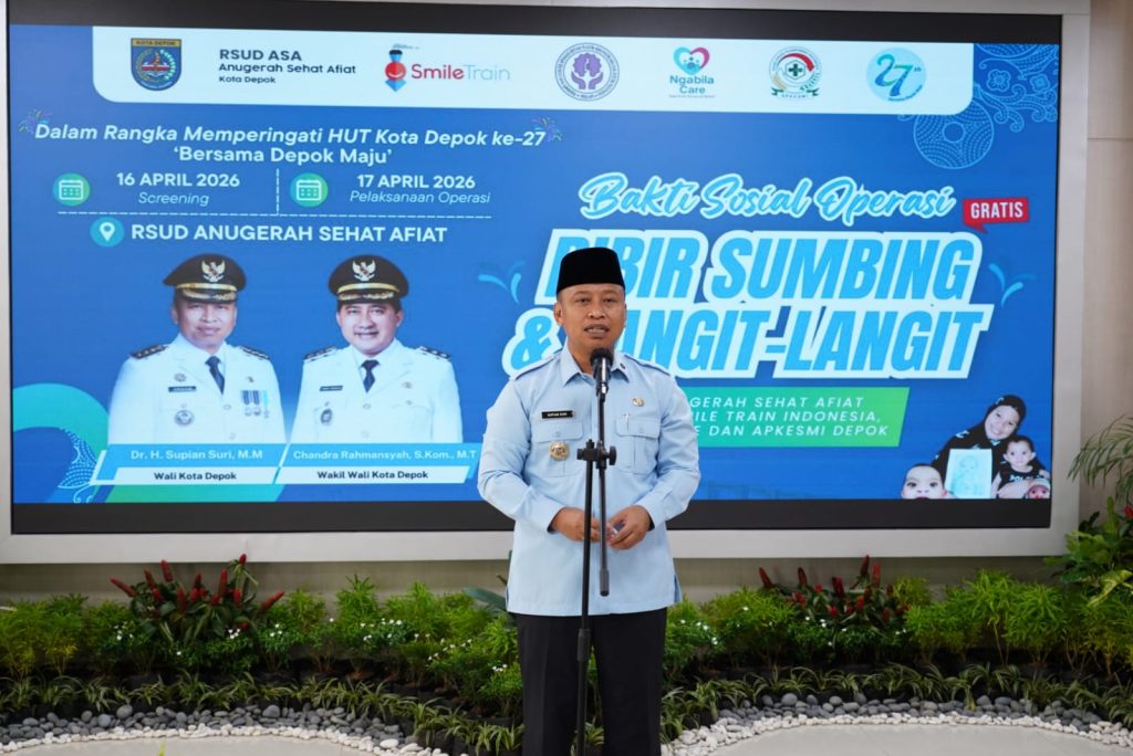 Prokopim.depok.go.id – Rumah Sakit Umum Daerah (RSUD) Anugerah Sehat Afiat (ASA) Kota Depok mengadakan bakti sosial operasi gratis bibir sumbing dan langit-langit dalam rangka HUT ke-27 Kota Depok. Kegiatan yang terselenggara atas kerjasama RSUD ASA dengan Yayasan Smile Train, dihadiri oleh Wali Kota Depok Supian Suri, Ketua Komisi B DPRD Kota Depok Hamzah, Pelaksana Tugas (Plt) Direktur RSUD ASA Kota Depok Indriati, Camat Tapos dan Lurah se-Kecamatan Tapos, Jum’at (17/04/2026).